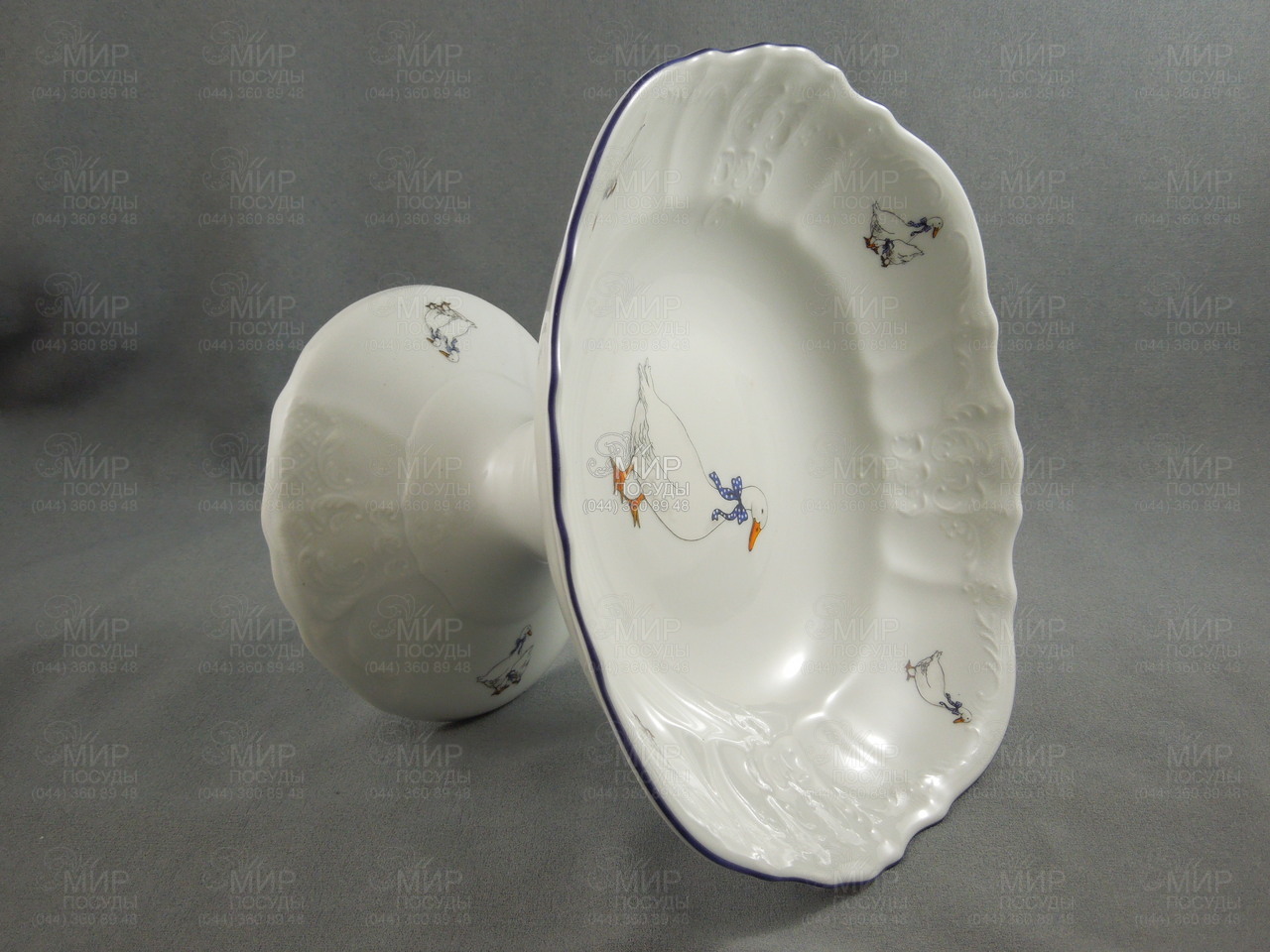 Мир посуды - Столовая посуда - Фруктовницы - Фруктовница на ножке Bernadotte Гуси голубой кант голубой кант 23см
