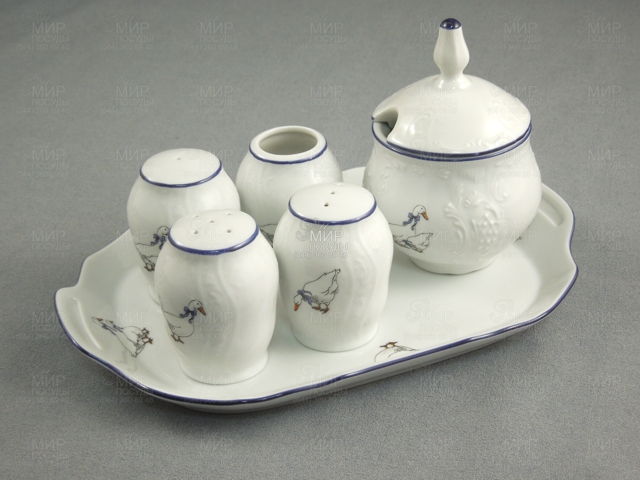 Мир посуды - Кухонные аксессуары - Наборы для специй - Набор для специй Bernadotte Гуси голубой кант голубой кант