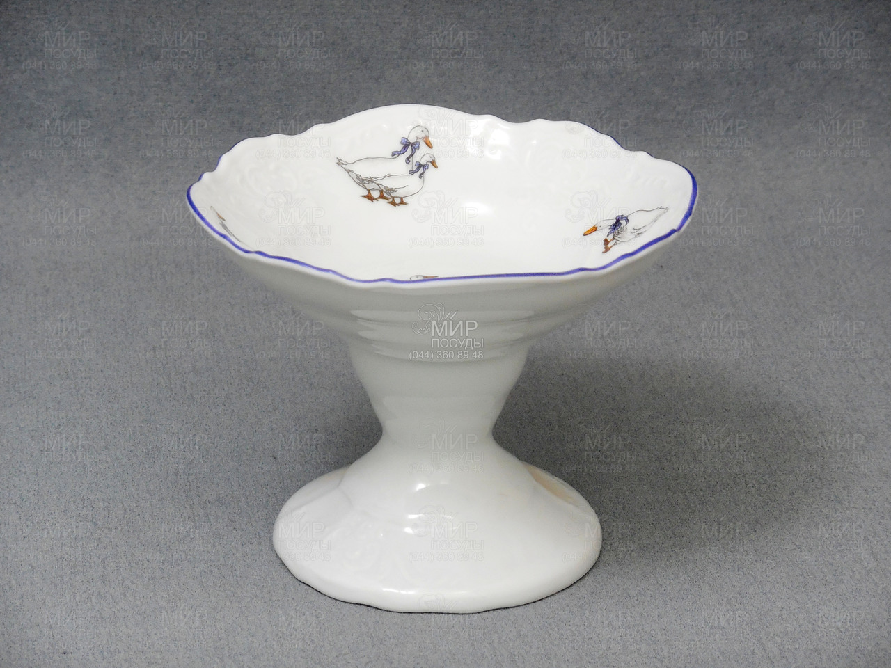 Мир посуды - Столовая посуда - Салатники - Салатник на ножке Bernadotte Гуси голубой кант голубой кант 13см