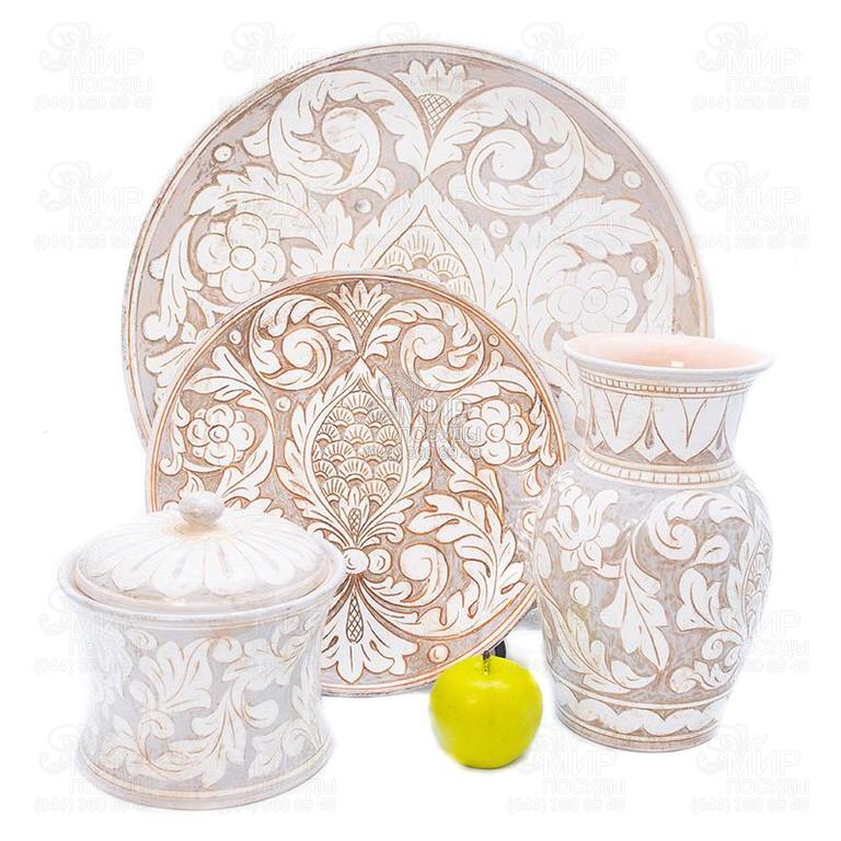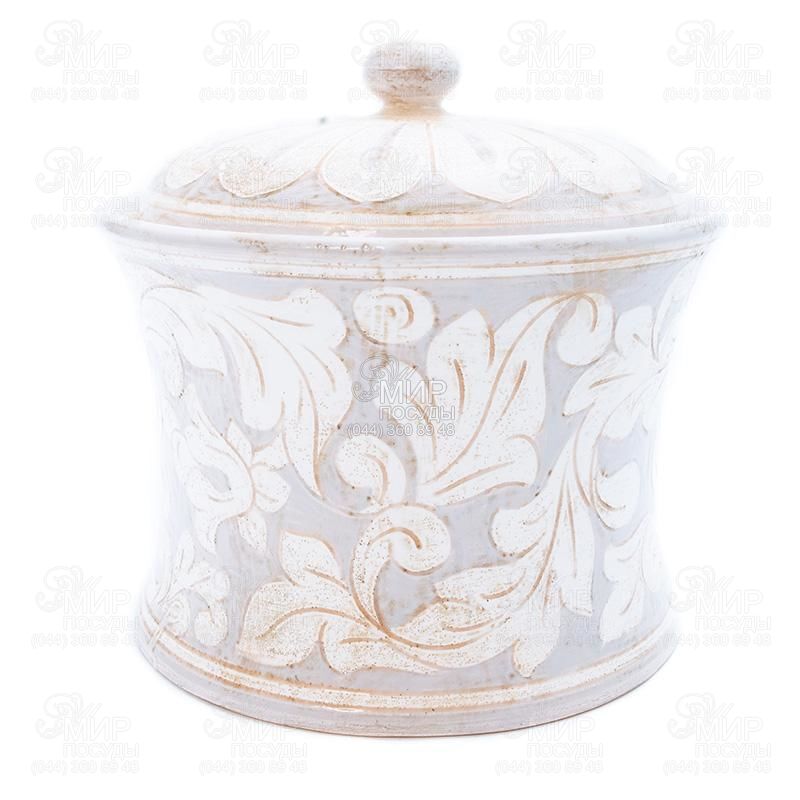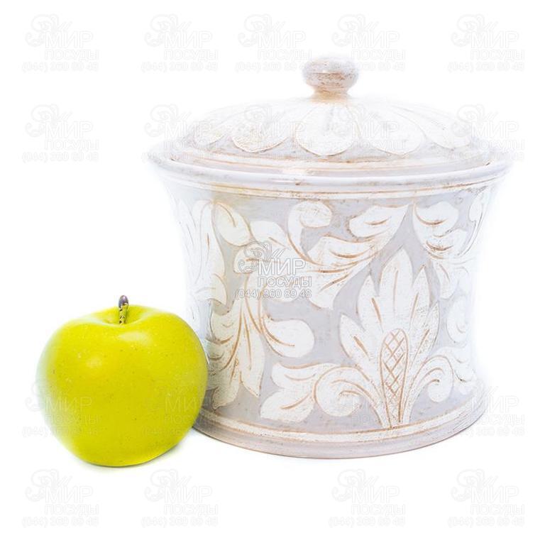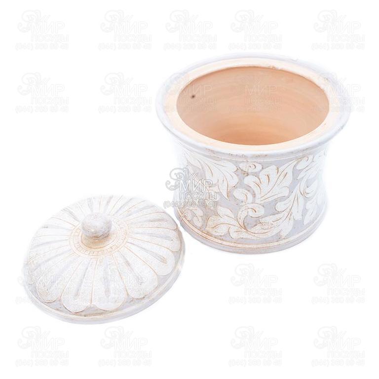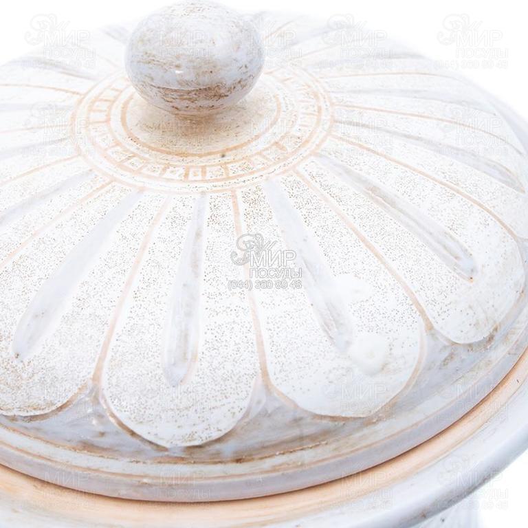 Стильная брендовая вещь из коллекции Scalfito может использоваться и как кухонный аксессуар, и как шкатулка для изысканного будуара. Раритетный дизайн этой емкости подчеркнут потертостями на нежной молочной патине, нанесенной поверх растительного орнамента. Контуры узора обрамлены фактурными бороздками в плотной керамике. Глазурованная поверхность не боится воздействия воды, изделие разрешено мыть, но только в ручном режиме без применения чистящих порошков и грубых щеток. Каждое изделие создано руками опытных мастеров города Дерута и имеет эксклюзивные отличия в росписи и тонкостях рельефа. О подлинности происхождения этой уникальной продукции свидетельствует подпись фабрики, нанесенная кистью на основание емкости. Коллекция декоративная и не предназначена для подачи еды.