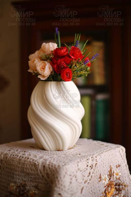 Ваза от украинского производителя изготовлена из фарфора в белом цвете. Идеально подходит как для торжественных событий, так и для повседневного использования.