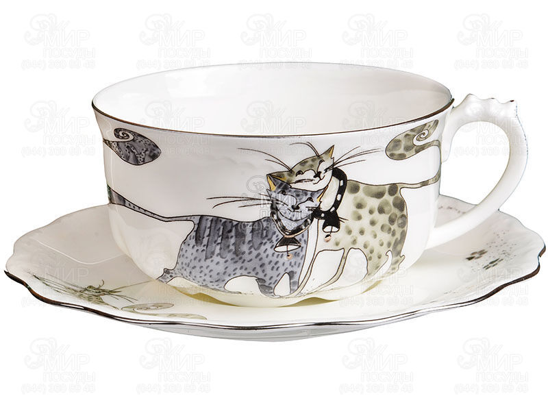 Мир посуды - Столовая посуда - Чашки - Чайные чашки - Чашка для чая с блюдцем Весёлые коты 300мл 264-645