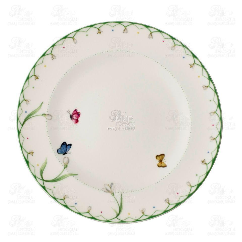 Тарелка обеденная с нежными цветами и разноцветными бабочками из коллекции Colorful Spring станет украшением вашего стола. Благодаря красочным весенним мотивам вы можете насладиться вкусными бутербродами, фруктами или яичницей.