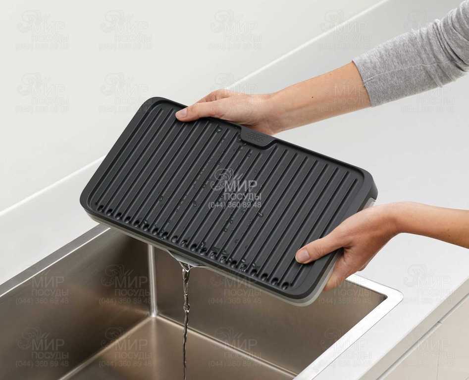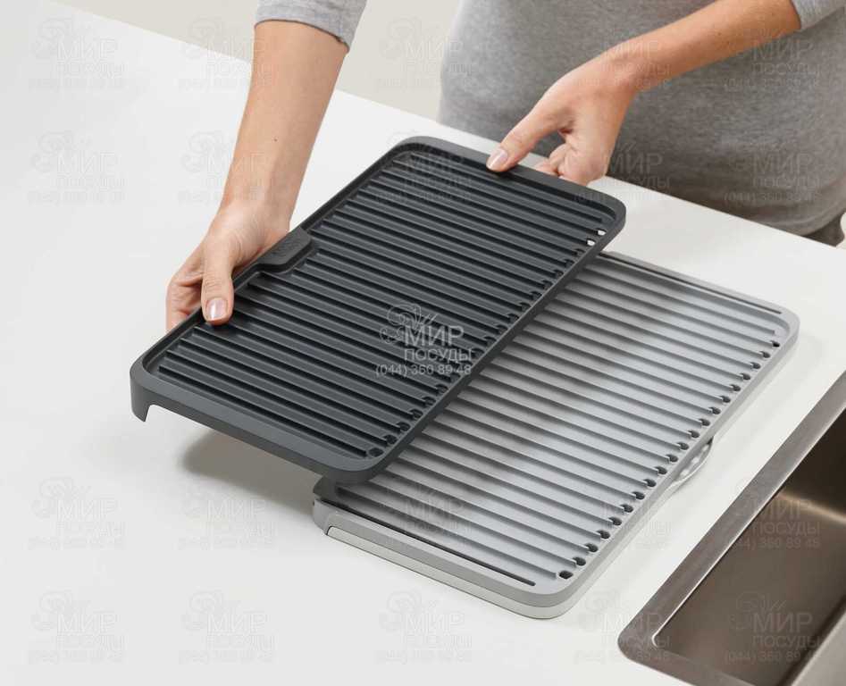 Эту удобную доску для сушки можно увеличить более чем в два раза, чтобы обеспечить место для большого количества посуды, а затем снова сложить и аккуратно хранить под раковиной или в шкафу. Поднятые ребра предотвращают попадание воды внутрь чашек и стаканов. Встроенный сливной носик позволяет аккуратно сливать жидкость. Доска для сушки посуды Joseph Joseph Tier™ - очередное доказательство невероятно функционального дизайна и бескомпромиссного качества.