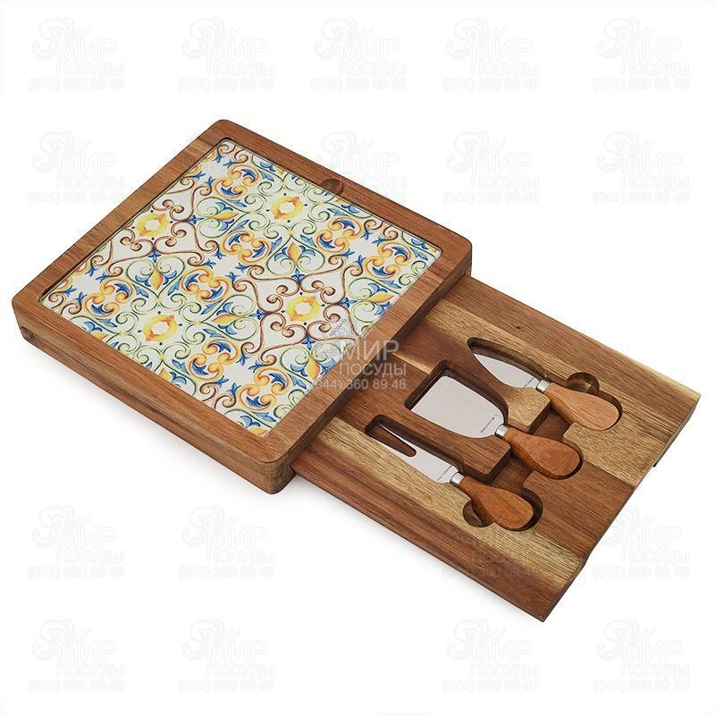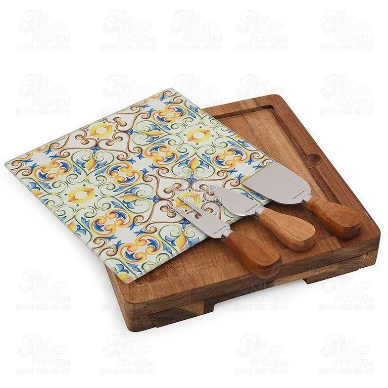 Мир посуды - Столовая посуда - Тарелки - Тарелка для сыра - Доска с ножом и вилкой для нарезки и подачи сыра Medicea 53731