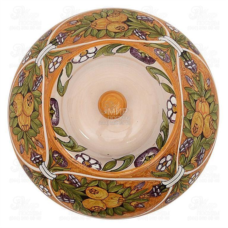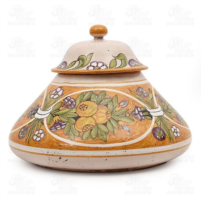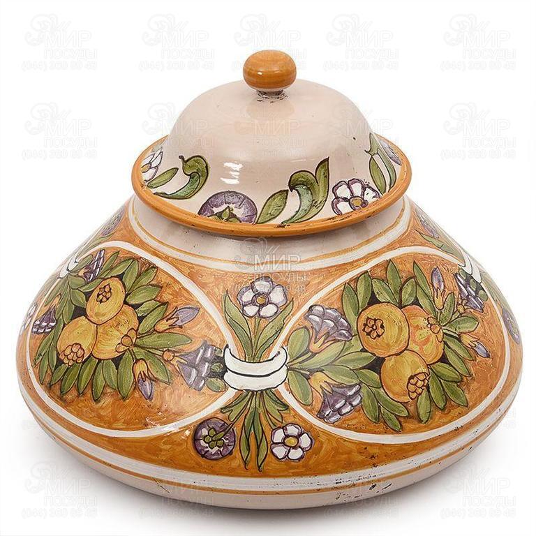 Оригинальная емкость для хранения с крышкой изысканно декорирует интерьер гостиной, выдержанной в стиле кантри или прованс. Глубокое изделие украшено сочным натюрмортом. Составьте коллекцию шедевров керамического искусства, изготовленных итальянскими мастерами, из соусника, горшка, напольной вазы и декоративной тарелки. Каждый предмет расписан вручную с использованием старинных традиций и сохранением общего дизайна.