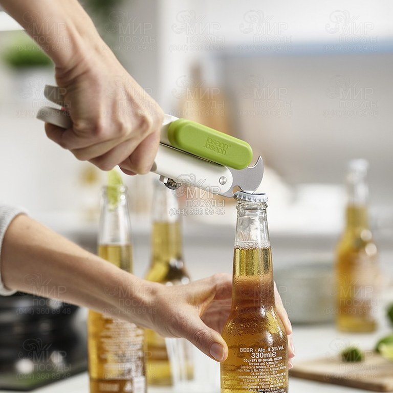 Этот многофункциональный инструмент сочетает в себе консервный нож, открывалку для банок с кольцом и открывалку для бутылок. Чтобы воспользоваться инструментами, нужно лишь повернуть ручку. Гаджет 3-в-1 занимает минимальное количество места для хранения. Следует мыть только вручную, и вытирать насухо.