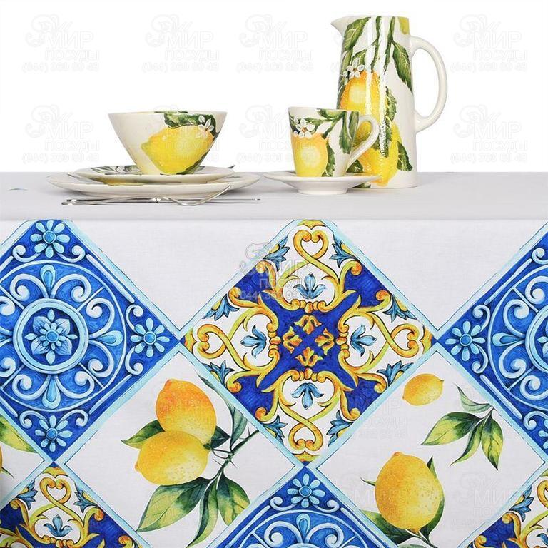 Мир посуды - Домашний интерьер - Домашний текстиль - Скатерти - Скатерть с тефлоновой пропиткой Орнамент с лимонами 160х300см MaLiSaTeMantel-160x300DAC