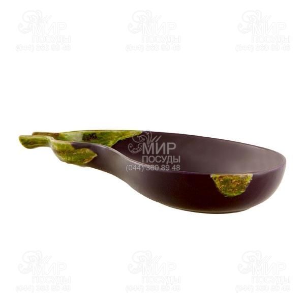 Салатник Баклажан от португальского производителя Bordallo изготовлен из керамики в стиле майолика. Он сделан в виде половинки крупного зрелого баклажана густого фиолетового цвета. С одной стороны он украшен зелеными листьями и ручкой в форме баклажанного хвостика. Такая глубокая емкость смотрится необычайно живописно и, как нельзя лучше, подойдет для подачи витаминных овощных салатов.