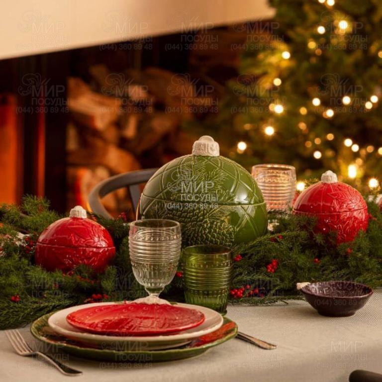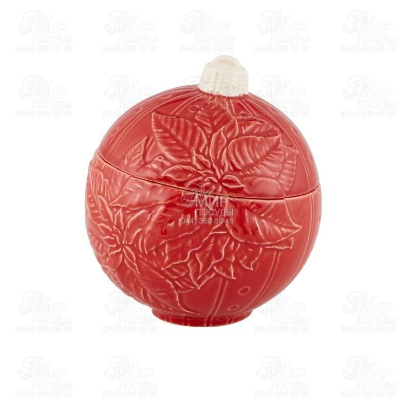 Ёмкость для хранения от португальского производителя Bordallo изготовлена из керамики в технике майолика. Изделие выдержано в красном цвете и обладает формой елочной игрушки. Данная модель станет ярким дополнением в сервировке рождественского стола.