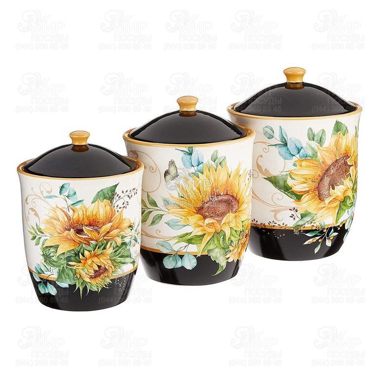 Мир посуды - Кухонная посуда - Емкости для продуктов - Банки для сыпучих - Набор емкостей для сыпучих Букет Подсолнухов 1,5/2,2/2,85л 28174