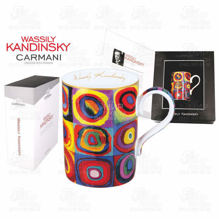 Кружка Carmani с принтом в виде репродукций картин всемирно известных художников абстракционистов станет отличным подарком для ценителей искусства и подчеркнет отличный вкус дарителя. Яркие цвета, геометрические рисунки с картин очень изящно и стильно выглядят на кружке прямой классической формы.
