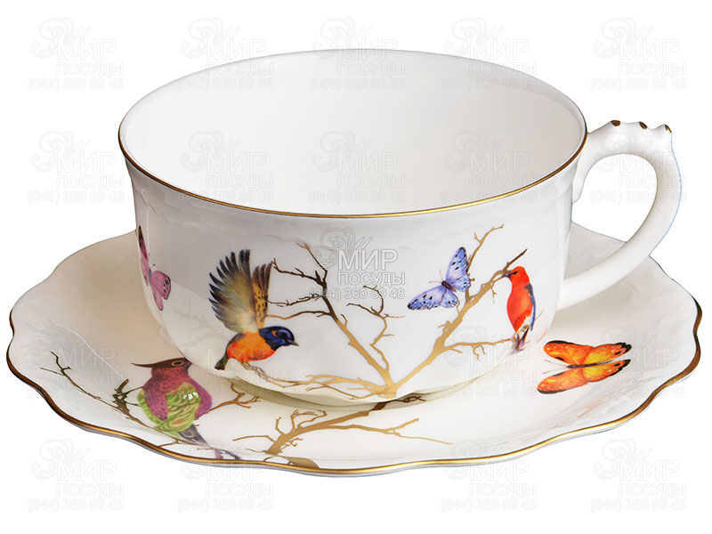 Мир посуды - Столовая посуда - Чашки - Чайные чашки - Чашка для чая с блюдцем Золотые птицы 400мл 264-639