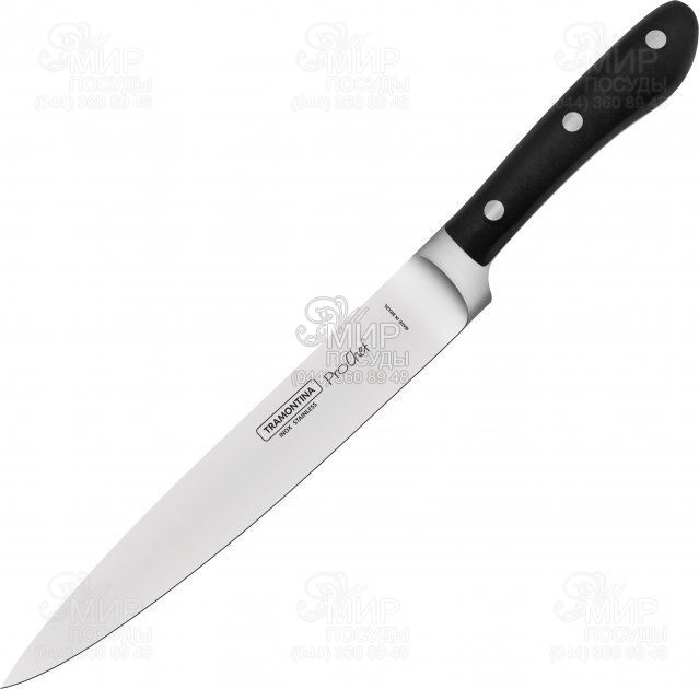 Удобный и практичный ножик Prochef от Tramontina. Лезвие выполнено из высококачественной стали, которая при бережном и правильном использовании держит заточку до года. Конечно, при условии, что Вы будете править лезвие соответствующим мусатом. Рукоять очень удобная, она не скользит в руке. Выполнена из поликарбоната, который на 30% состоит из стекловолокна. Хранить нож рекомендовано на магнитной планке или в подставке, где нож будет жестко зафиксирован и не будет тупиться. Как например, если храниить его в постоянно выдвигаемом ящике со всеми столовыми приборами и кухонной утварью.