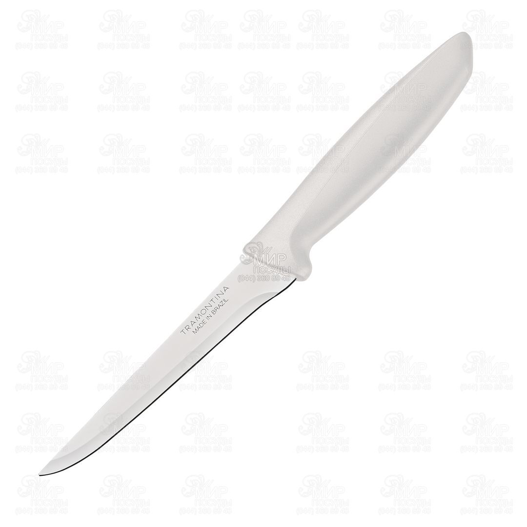 Нож серии Plenus от бразильской компании по производству посуды Tramontina прослужит Вам долгие годы. Лезвие ножа изготовлено из мартенситной нержавеющей стали AISI 420, которая отличается хорошей коррозийной стойкостью, продолжительным сроком службы. Так же, благодаря термообработке прочность стали увеличивается. Ручка выполнена из полипропилена, обладающего высокой термостойкостью и ударной прочностью.