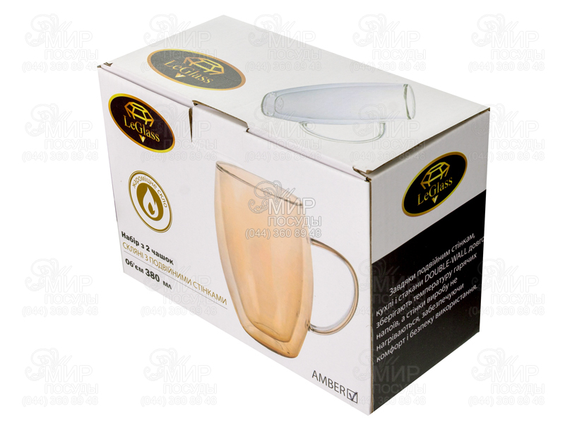 Чашки от LeGlass изготовлены из прочного стекла с двойными стенками. Благодаря этому, снаружи стекло не нагревается и Вы можете с комфортом насладиться любимым горячим напитком.