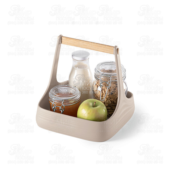 Идеально подходит не только для легкой транспортировки приправ, специй, меда и джемов с кухни на стол, но и для поддержания чистоты кухонной столешницы или стола. Изделие также отлично подходит для обедов на открытом воздухе и может служить держателем для салфеток. Большое основание из переработанного пластика надежно удерживает все предметы, помещенные внутрь, а деревянная ручка - обеспечивает безопасное ношение.
