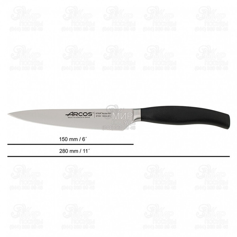 Нож Clara от Arcos предназначен для универсальных работ на кухне. Серия кованых ножей разработана для профессионального и домашнего использования. Лезвие ножа для кухни изготовили из эксклюзивной нержавеющей стали NITRUM, обладающей сверхвысокой режущей способностью, повышенной твердостью и коррозостойкостью. В результате лезвие долго не затупляется, не ржавеет, поэтому изделие имеет долгий срок службы, обеспечивая экономическую эффективность инвентаря. Рукоятка идеальна для интенсивного использования благодаря эргономичной форме с утолщением посередине. Комфортный захват рукоятки не перегружает кисть руки в течение длительной работы. Рукоятку изготовили из антискользящего полипропилена, устойчивого к кислотам, хлору, моющим средствам и высоким температурам. Больстер ножа располагается на передней части рукоятки и уменьшает нагрузку на руку повара при нарезании.