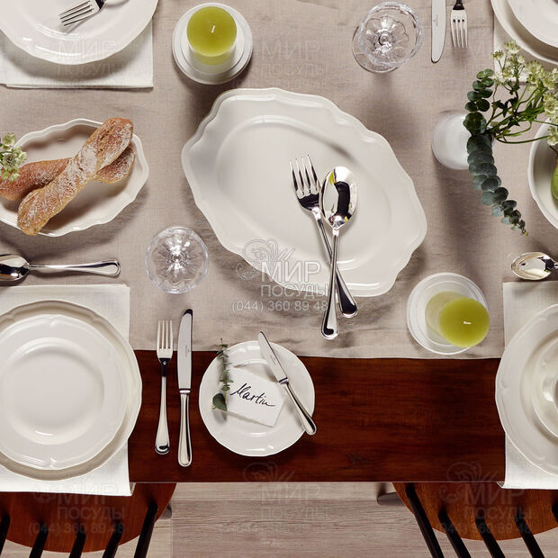Тарелка из новой коллекции немецкого бренда Villeroy & Boch идеально подходит для фруктов, яичницы или же сладких десертов. Материал из высококлассного премиум-фарфора несомненно обеспечит прочность и долговечность этой посуды. Дизайн данного изделия пронизан сочетанием нежных рельефных линий и аккуратных тонких граней. Салатная тарелка от Villeroy & Boch – это обязательный сервировочный элемент вашего стола. Абсолютно точно можно сказать, что без такого очаровательного аксессуара не сможет обойтись ни одна хозяйка. С коллекцией Manoir ваша кухня заживет новой жизнью и наполнится уютной атмосферой.