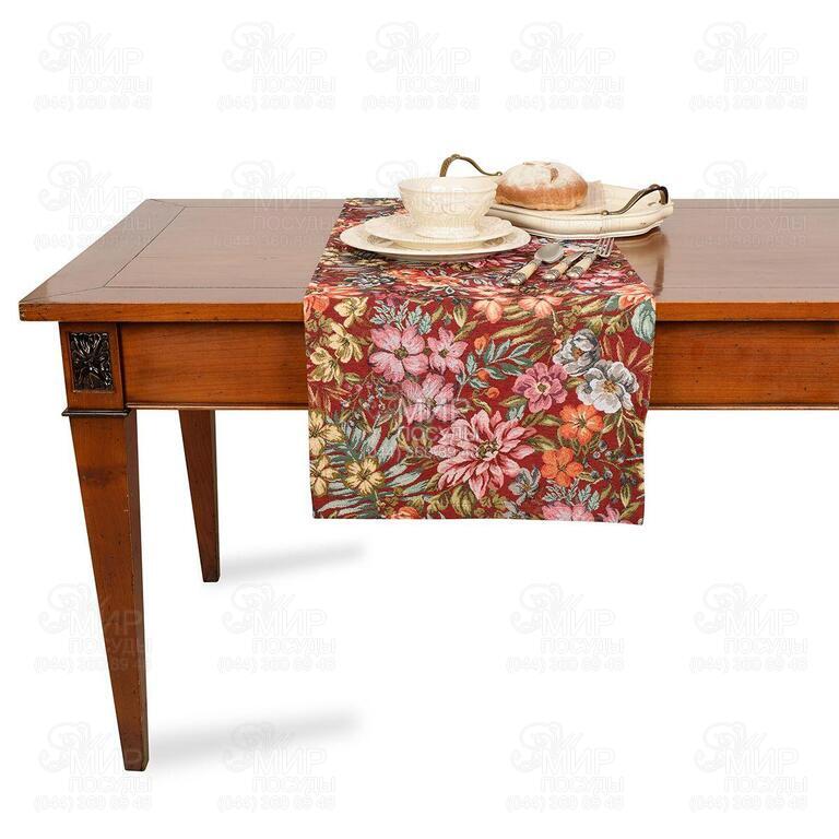 Мир посуды - Домашний интерьер - Домашний текстиль - Раннеры - Раннер с тефлоновым покрытием Цветущий сад burgundy 45х140см EmelBorATRunner-45х140DA