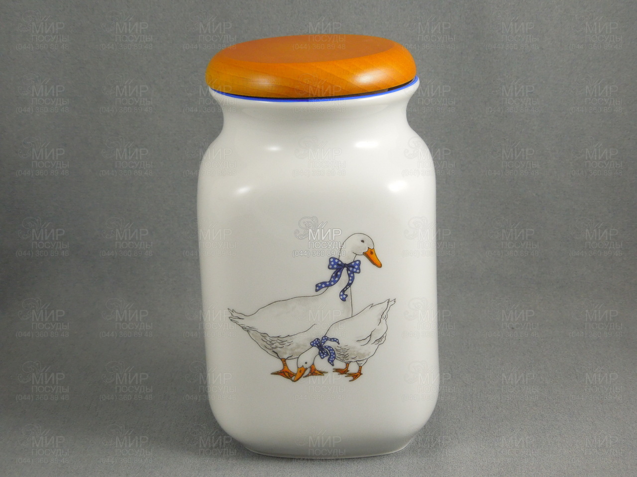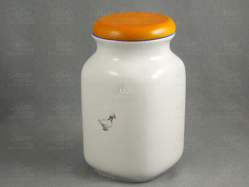 Мир посуды - Кухонная посуда - Емкости для продуктов - Банки для сыпучих - Емкость с деревянной крышкой Гуси 8134413 1л
