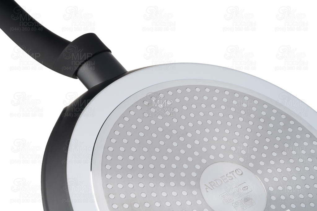 Сковорода серии Gemini от украинского бренда Ardesto изготовлена из кованого алюминия черного цвета. Оснащена мраморным антипригарным покрытием и легко моется. Нельзя мыть в посудомоечной машине.