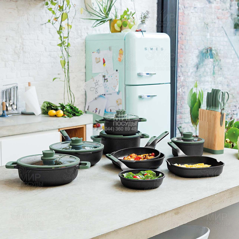 После большого успеха посуды серии LEO компания BergHOFF расширяет коллекцию из литого алюминия. Элегантный современный дизайн, продуманные инновации и обновленная конструкция гарантируют удовольствие от использования посуды серии Leo Forest. Кастрюля изготовлена из литого алюминия с нанесением нескольких слоев антипригарного покрытия Fernogreen, не содержит ПФОК, свинец и кадмий. Многослойная конструкция продлевает срок службы посуды, обеспечивает быстрый нагрев и равномерное распределение тепла, облегчает приготовление любимых блюд. Рекомендуется ручная мойка.