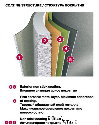 - Антипригарне покриття QuanTanium наноситься в три шари, загальна товщина яких становить 43 мкм. Сьогодні це найтовще антипригарне покриття серед усіх відомих виробників! Гарантія найвищої надійності