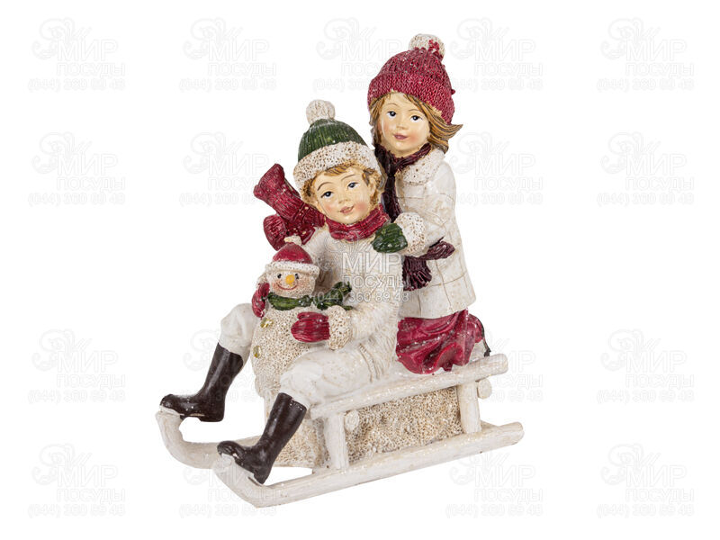 Світ посуду - Домашній інтер'єр - Скульптури - Скульптура Новорічна колекція Діти на санях 12см 192-205-1