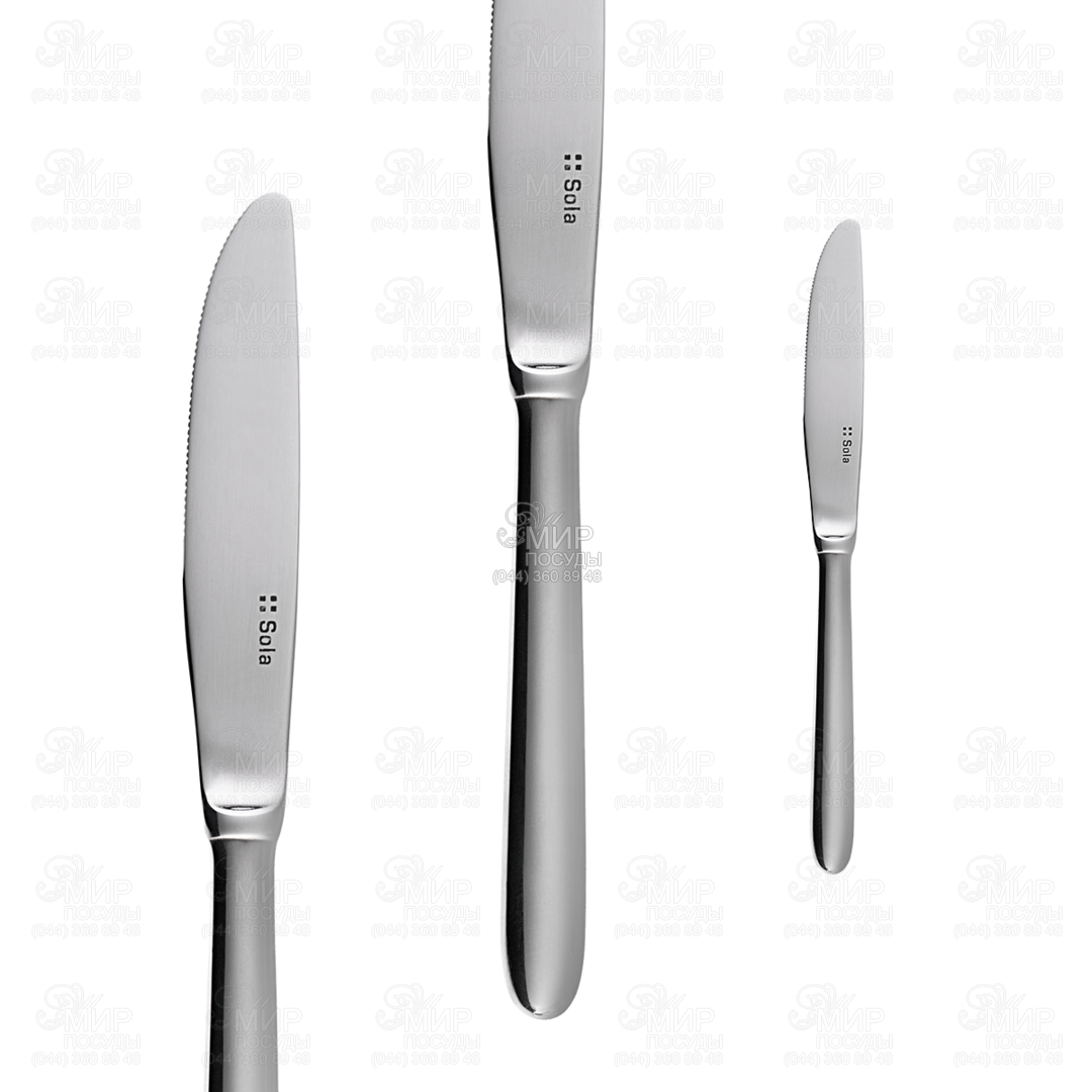 Ніж від швейцарського бренду Sola Switzerland виконаний в сучасному лаконічному стилі. Стильна та ергономічна порожниста ручка легко фіксуються в руці. Ніж виготовлений із високоякісної хромонікелевої сталі 18/10. Полірований матеріал покритий спеціальним покриттям, яке захищає їх від дрібних подряпин і харчових кислот.