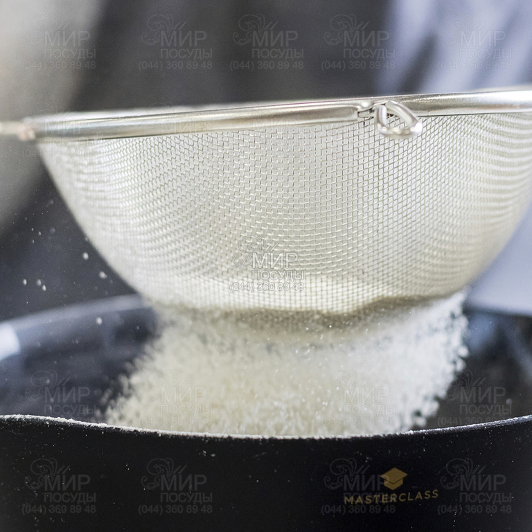 Сито від Kitchen Craft виготовлено із нержавіючої сталі. Має загнуті опори для розміщення поверхні чаші чи каструлі. Підійде для просіювання борошна, цукрової пудри чи какао. Має широку дротяну ручку з можливістю підвішування.
