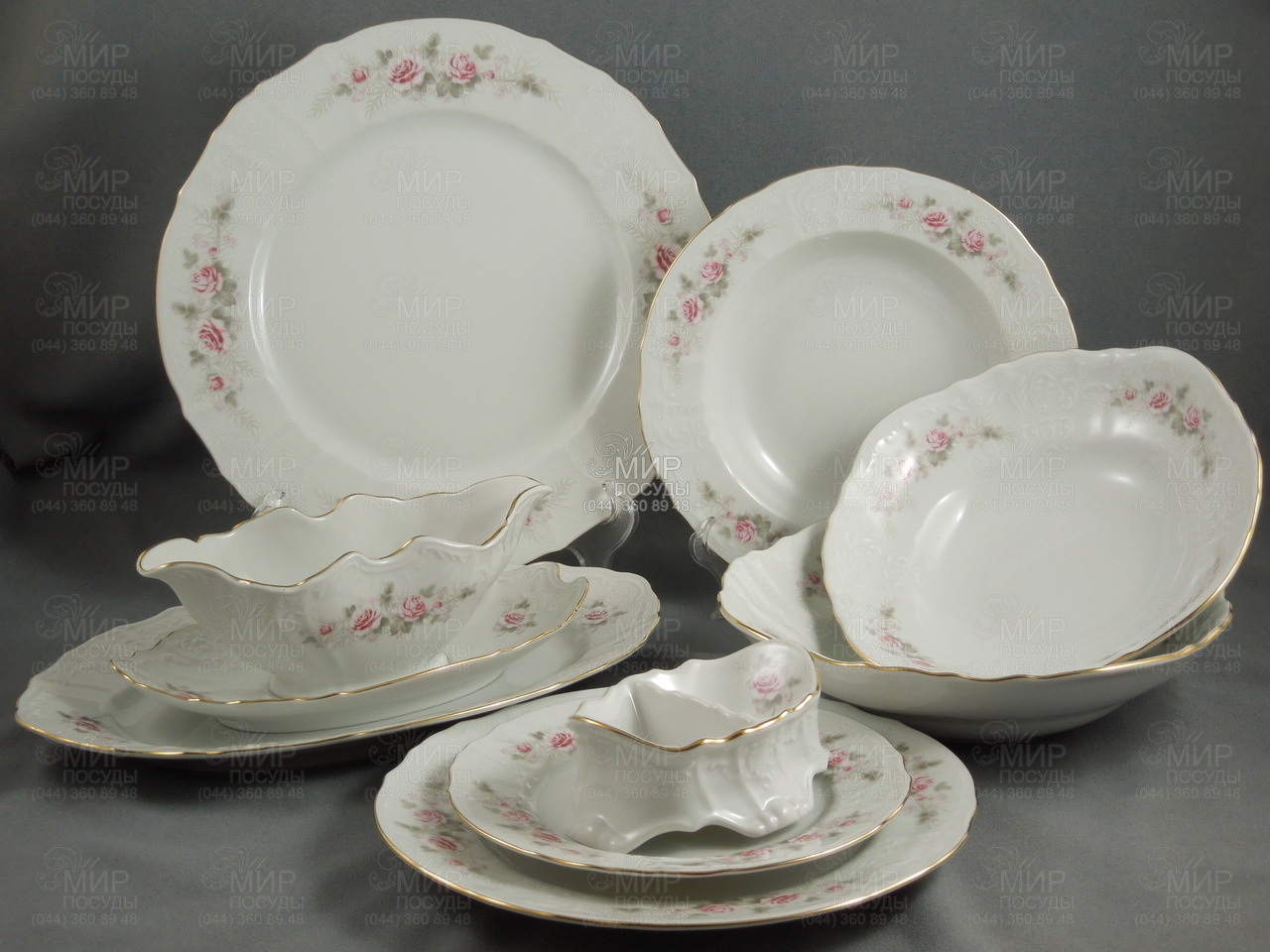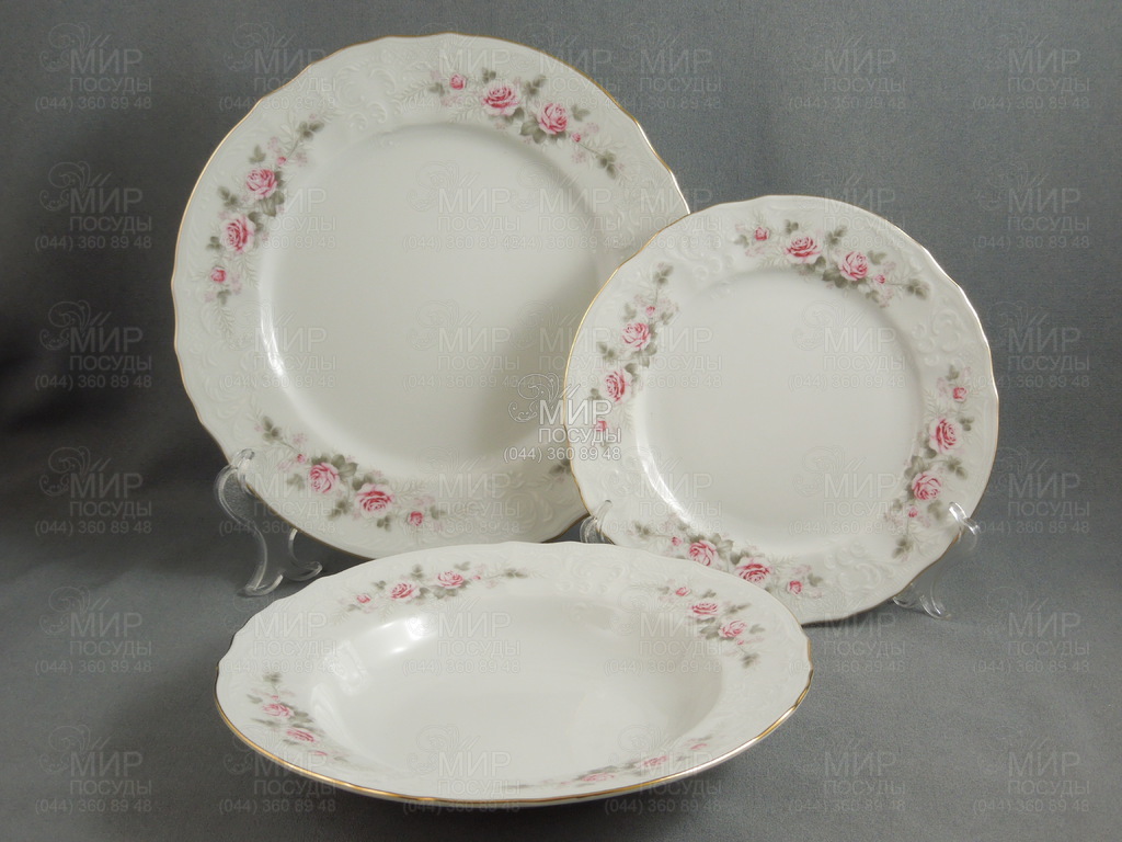 Світ посуду - Столовий посуд - Столові сервізи - Столовий сервіз Bernadotte Бліді троянди із золотою облямівкою 6/24