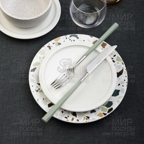 Набір столових приладів Hive від італійського виробника Pintinox виконаний з нержавіючої сталі, яка має високі гігієнічні та антикорозійні властивості. Вироби не схильні до впливу лугу та кислот, не впливають на смак їжі і легко миються. Ці прилади стануть відмінними аксесуарами як на святковому, так і на буденному столі і однаково вишукано виглядатимуть на будь-якій кухні.