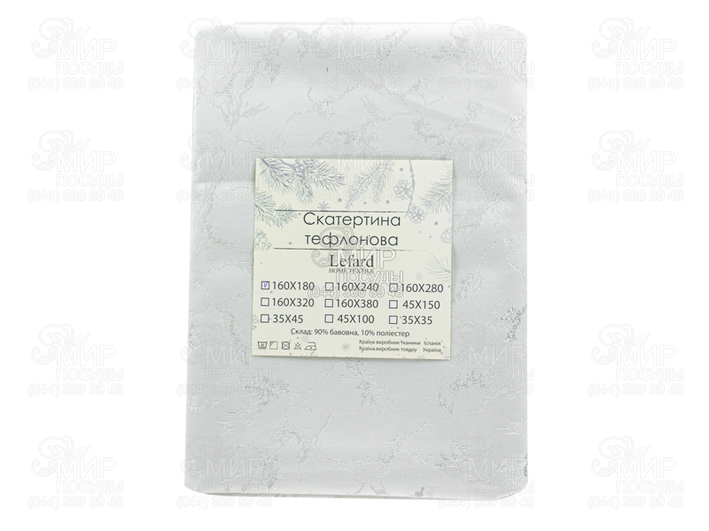 Скатертина від іспанського виробника Lefard Spain виготовлена з поліестеру та бавовни. Ідеально підходить для щоденного домашнього використання, оскільки не потребує особливого догляду. Категорично не допускається застосування відбілювача, пом'якшувача тканини або хімічне чищення. Гладити виріб після прання слід зі зворотного боку.