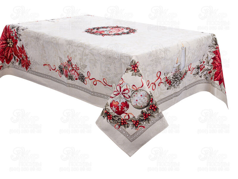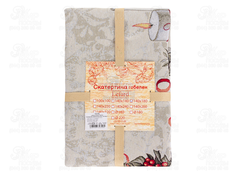 Скатертина з люрексом від іспанського виробника Lefard Spain виготовлена з гобелену. Зимові святки приносять у наші будинки атмосферу радісних чудес та доброї новорічної казки. Наголосити на красі цих свят допоможе барвистий гобеленовий текстиль з малюнком у різдвяній стилістиці. Категорично не допускається застосування відбілювача, пом'якшувача тканини або хімічне чищення. Гладити після прання слід із зворотного боку.
