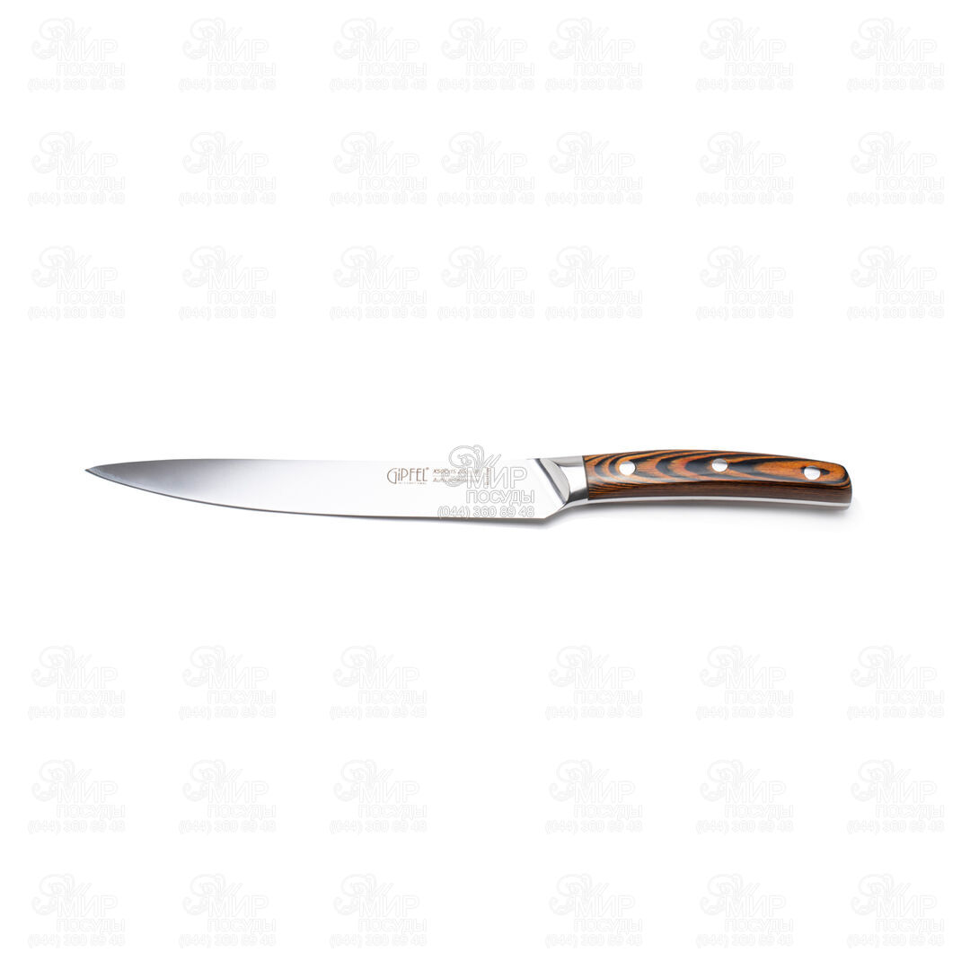 Ніж Tiger від німецького виробника Gipfel відрізняється від інших насамперед матеріалом леза, яким є сталь марки X50CrMoV15. Він є відмінним поєднанням гостроти, гнучкості та міцності, тобто саме тим, чим має виділятися ідеальний кухонний ніж. Додайте до цього зручну рукоятку, що не вислизає під час різання, і ви отримаєте справжні професійні ножі, якими тепер можна укомплектувати вашу кухню.