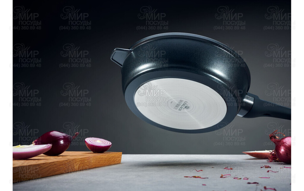 Сковороди з лінійки Monolit від польського виробника Gerlach відрізняються позачасовим дизайном та увагою до деталей. Вони підійдуть до будь-якого інтер'єру, а їх переваги особливо оцінять найвибагливіші любителі кулінарії. Посудина виготовлена з високоякісного литого алюмінію та стійка до деформації та подряпин. Сковорода має швейцарське керамічне покриття Ilag Xera Dur 2 Ceramic Non Stick, посилене шарами ксерогеля, тому вона не тріскається. Товсте дно, що складається з 4 шарів, гарантує рівномірний розподіл тепла всередині ємності, що скорочує час смаження і дозволяє використовувати менше енергії. Сковорода має вбудований алюмінієвий диск із технологією Full Induction. Підходить для всіх типів плит: індукційних, газових, електричних та керамічних. Зручна ручка з покриттям Soft Touch ідеально лежить у руці та не нагрівається, що полегшує смаження при високих температурах. Зі турботи про здоров'я користувачів та навколишнього середовища посуд не містить небезпечних речовин та повністю безпечний.