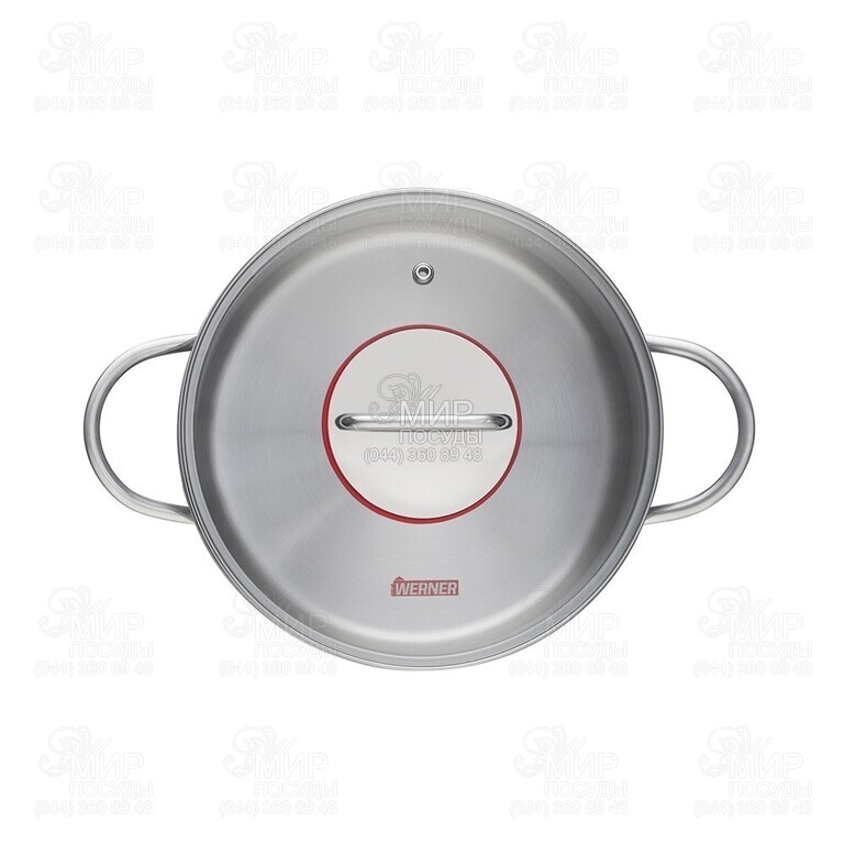 Каструля з кришкою Werner Como Gipfel виготовлена з високоякісної нержавіючої сталі. Посуд має багатошарове капсульне дно, що сприяє рівномірному розподілу тепла та збереженню температури страви вже після процесу готування, що дозволяє йому наполягати та придбати більш насичений смак. Ручки міцно приварені. Усередині для зручності є мірна шкала. Закруглені ручки широко розставлені, тому не нагріваються під час готування. Крім того, можна захопити їх всією долонею, не боячись обпектися об гарячі стінки каструлі. Під ручкою скляної кришки є диск з нержавіючої сталі, що нагрівається набагато менше скла і запобігає зіткненню руки з поверхнею кришки. Диск має червону силіконову герметичну окантовку у колір фірмового логотипу Werner. На кришці є отвір для виходу пари.