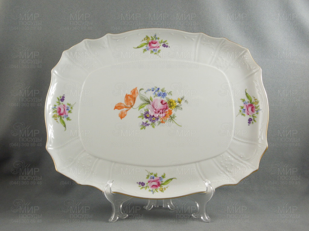 Світ посуду - Кухонний посуд - Таці та столики - Таці - Піднос прямокутний на ніжці Bernadotte Мейсенський букет 40см