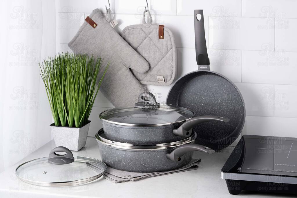 Пательня Gemini Gourmet Apulia від Ardesto виготовлена з алюмінію з антипригарним покриттям та термостійкою ергономічною ручкою.