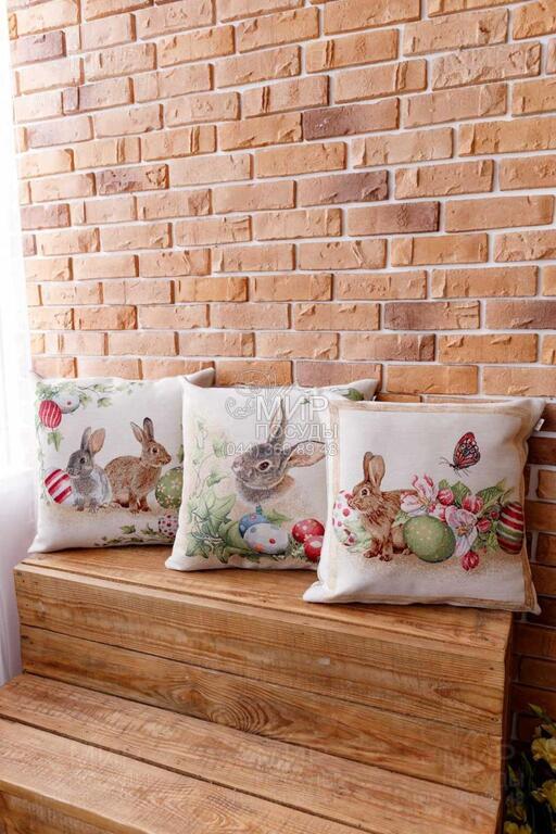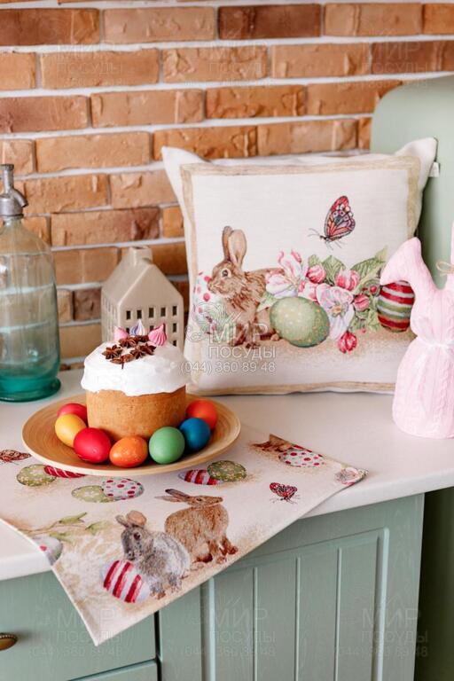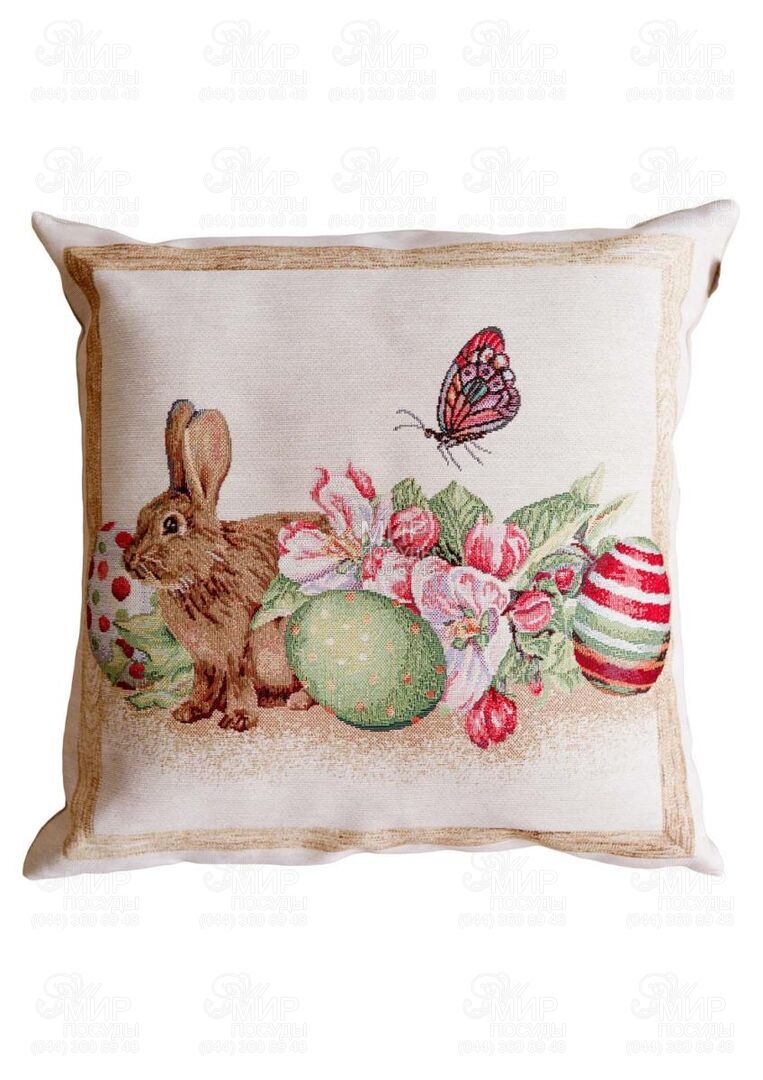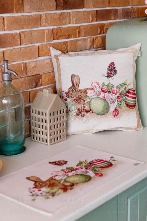 Світ посуду - Домашній інтер'єр - Подушки декоративні - Подушка декоративна Веснянка Заєць з писанками та квітами 45х45см 4823093456662