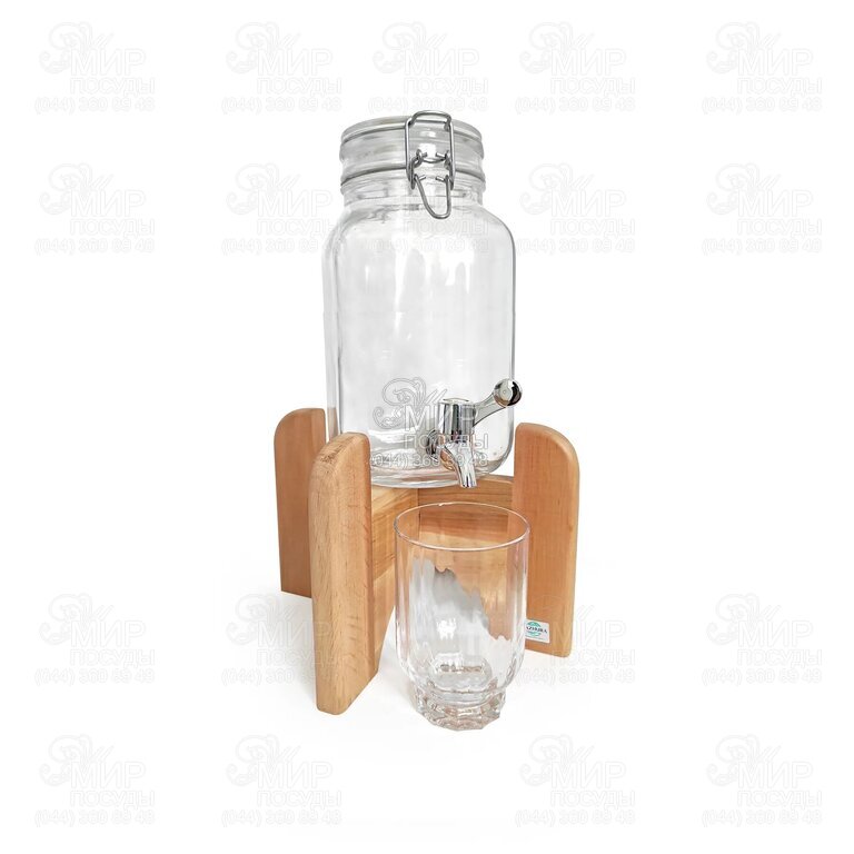 Диспенсер для напоїв на дерев'яній підставці Bar 2л mz727413
