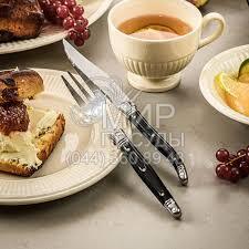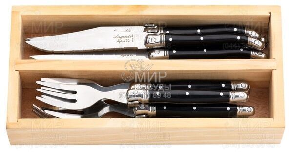 Набір столових приборів серії Premium від компанії Laguiole Style de Vie виготовлений із нержавіючої сталі, а ручки - із пластику, у чорному глянсовому кольорі.