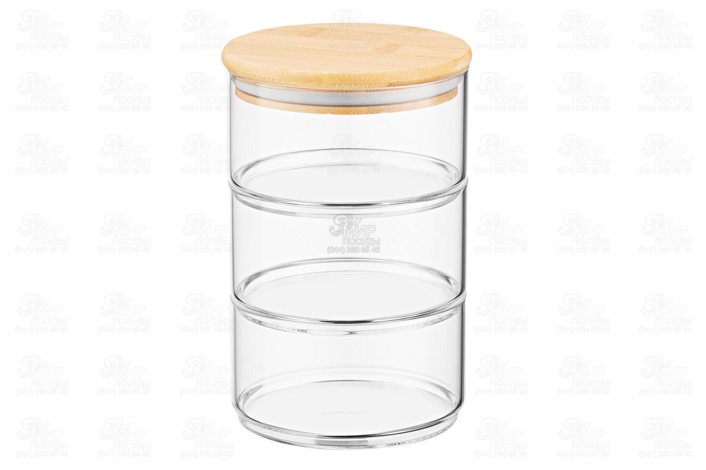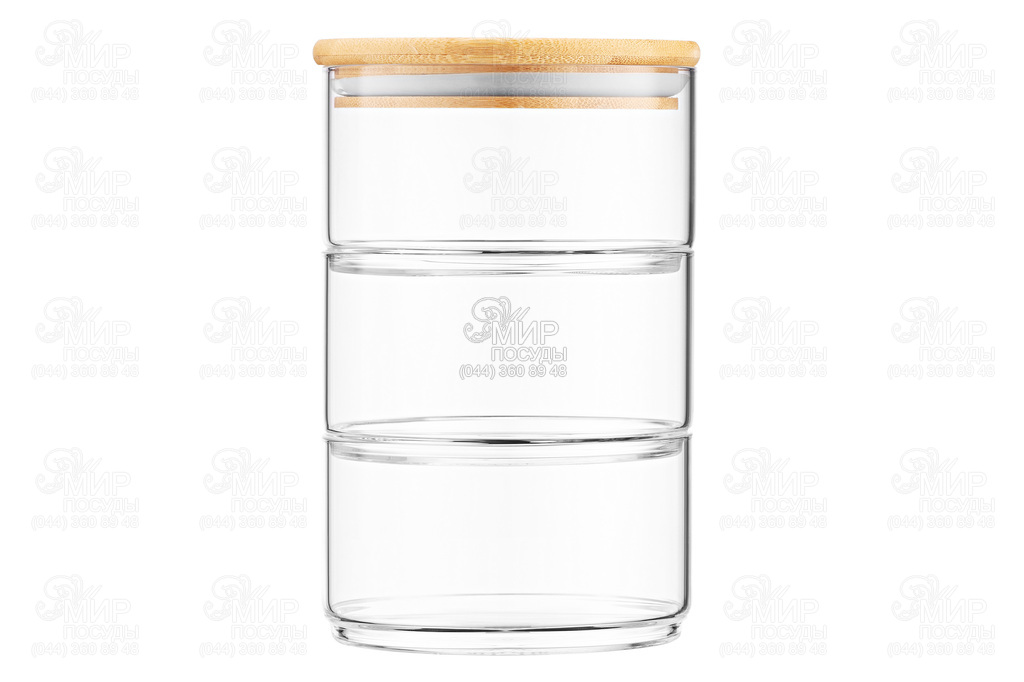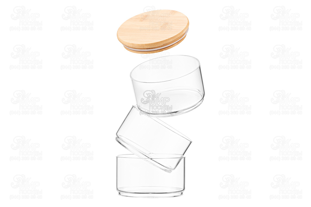 Набір ємностей для сипучих Midori від Ardesto складається з трьох прозорих ємностей, виготовлених із боросилікатного скла та бамбуковою кришкою. Вони дозволяють заощаджувати простір, якщо поставити їх один на одного.