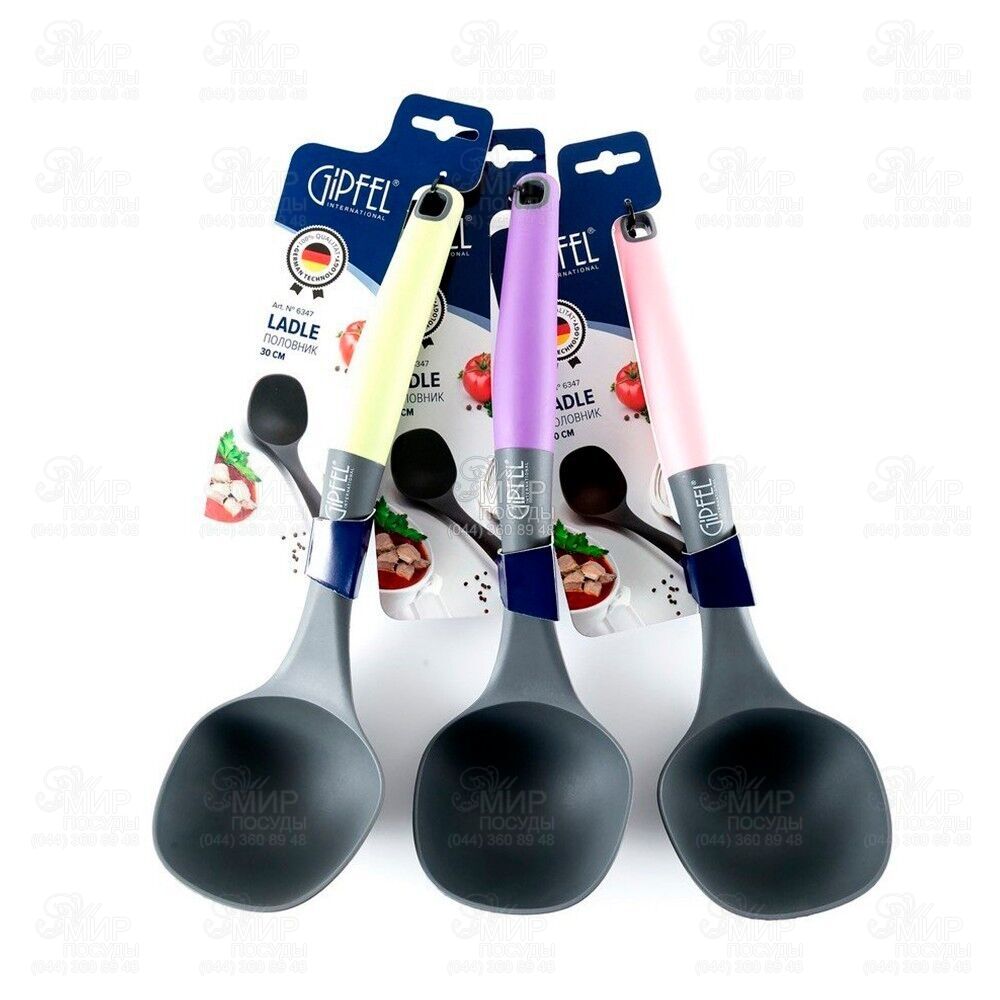 Ополоник від Gipfel стане чудовим доповненням до набору аксесуарів та приладдя для кухні. Виконаний із термостійкого нейлону, який відмінно зарекомендував себе у виробництві кухонного начиння, завдяки високій міцності, довговічності та відсутності реакцій з продуктами харчування.