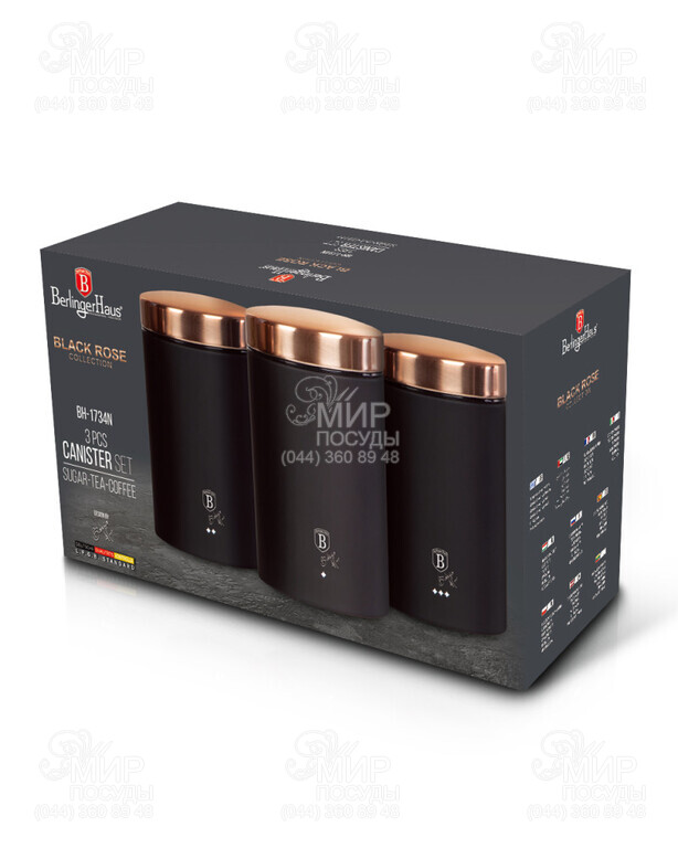 Світ посуду - Кухонний посуд - Ємності для продуктів - Банки для сипких - Набір ємностей для сипучих Black Rose 17,8см BH-1734N
