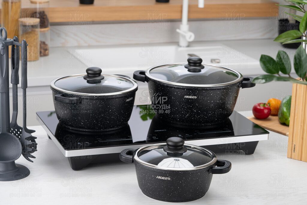 Каструля Gemini Anzio від Ardesto виготовлена з алюмінію з антипригарним покриттям. Особливістю виробу є знімні силіконові накладки на алюмінієві ручки, які забезпечують комфортне та безпечне переміщення каструлі навіть коли вона розігріта.