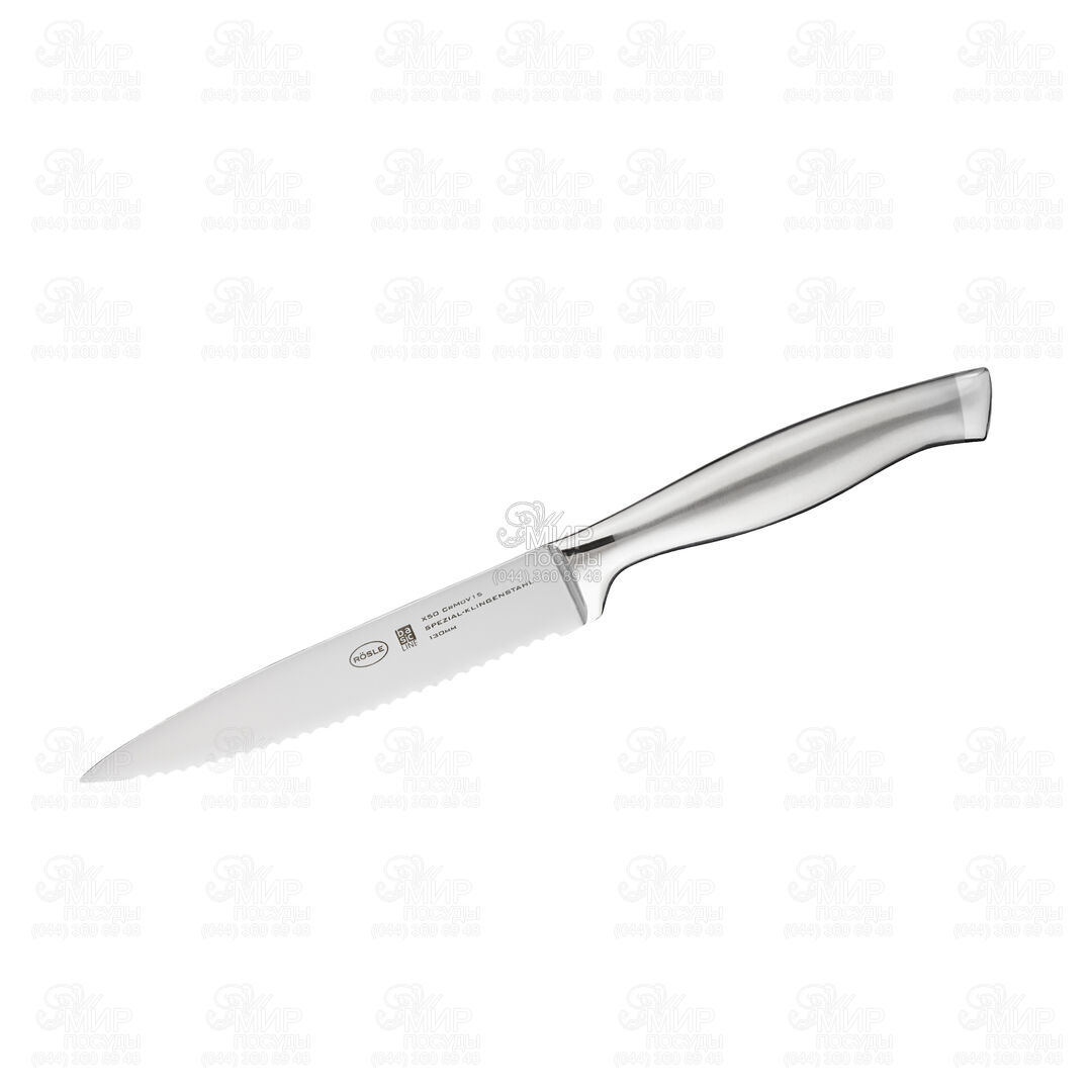 Ніж Basic Line від німецького виробника Rosle виготовлений з X50CrMoV15 - це стійка до іржі та кислот, дуже тверда сталь для лез. Цей сплав на 100% не містить нікелю, який, як передбачається, спричиняє алергічні реакції. Спеціальні інгредієнти у цій сталі для лез посилюють захист від корозії та точкової корозії, одночасно підвищуючи міцність сталі.