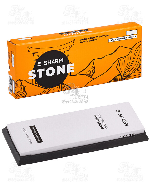 Точильний камінь Sharpi з градацією 1000 та зернистістю 11,5. Оснащений абразивною поверхнею з електрокорунду розміром 18 см на 6 см для тривалого терміну служби та низького зносу. Підвищена жорсткість каменю відповідно до японського стандарту JIS R6001 забезпечує швидке заточування. Підходить для кухонних ножів, кишенькових ножів, мисливських ножів та ножиць, садових інструментів, сокир, мачете, бритв, стамесок та інших сталевих інструментів.