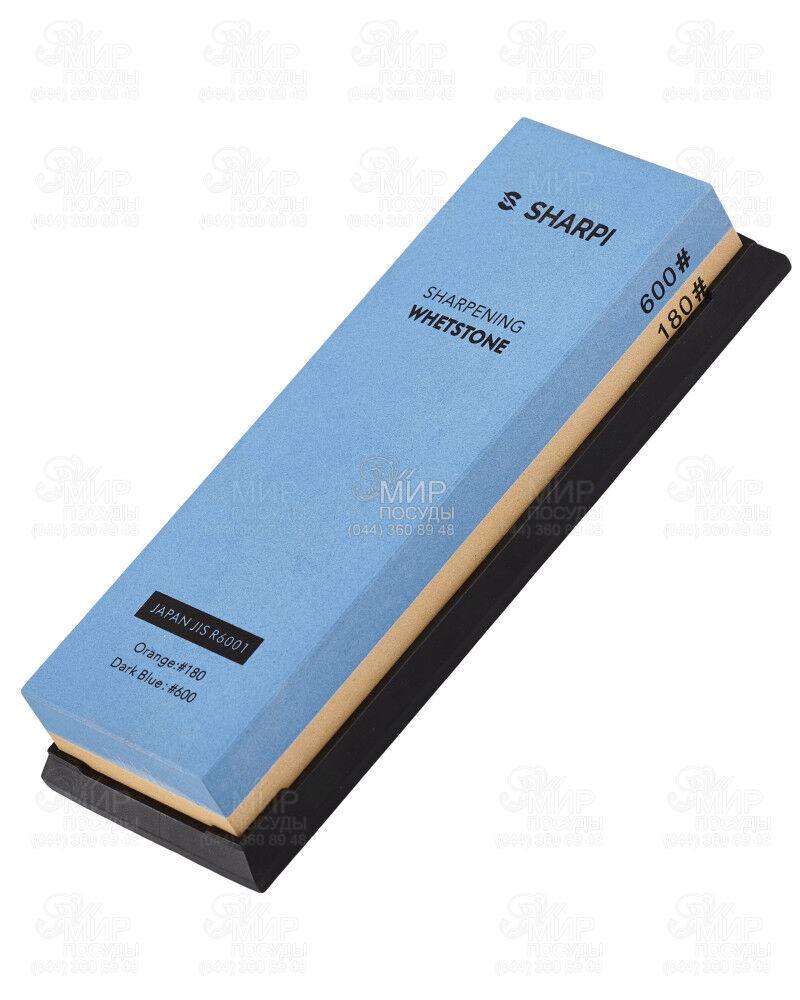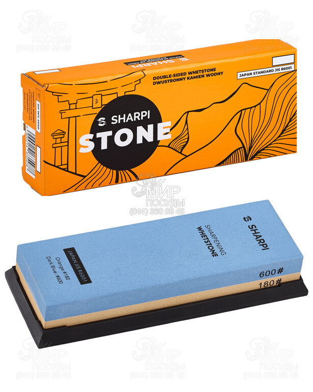 Точильний камінь Sharpi має дві заточувальні поверхні із зернистістю 180 - для попередньої обробки тупих кромок і 600 - для відновлення гостроти. Підвищена жорсткість каменю відповідно до японського стандарту JIS R6001 забезпечує швидке заточування. Підходить для кухонних ножів, кишенькових ножів, мисливських ножів та ножиць, садових інструментів, сокир, мачете, бритв, стамесок та інших сталевих інструментів.